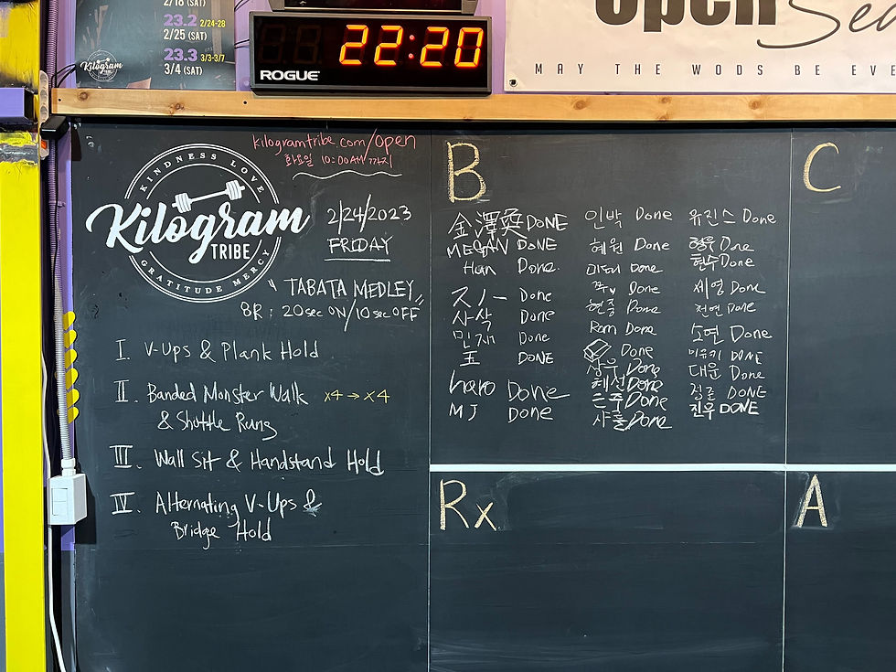 2023/02/24 “TABATA MEDLEY”Grace Feb 24, 20231 min read오늘은 트레이닝 데이였습니다. 다들 조금씩 강력해졌길 🙏🏻즐거운 주말 보내시고, 측정이 있으신분들은 몸관리잘하세요! 굿밤들